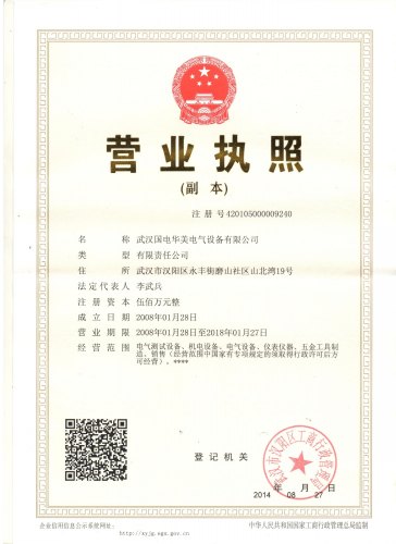 | 持证单位: 武汉国电华美电气设备有限公司 |