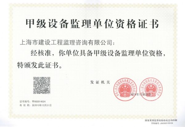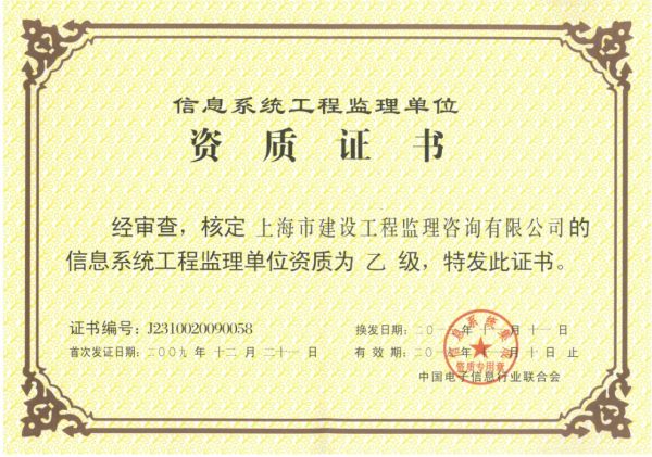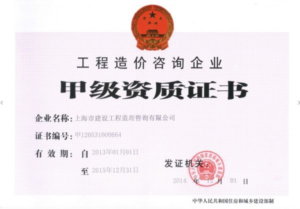 资质单位: 上海市建设工程监理咨询有限公司
