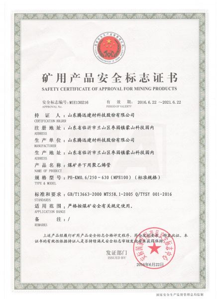PE产品认证证书