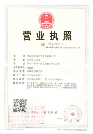 | 持证单位: 保定市宏喆电气设备有限公司 |